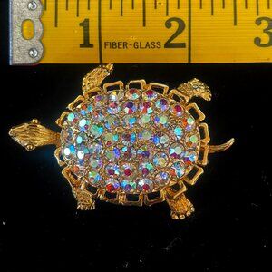 Dazzling vintage turtle brooch with AB stones. This piece dances in the light.