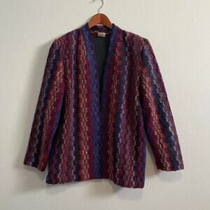 70s Vintage Graff Californiawear Mohair Blend Colorful Boho Hippy Knit Cardigan Blazer