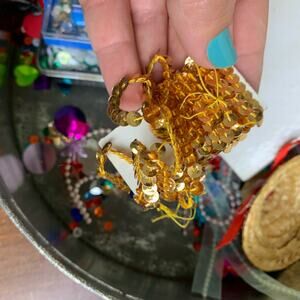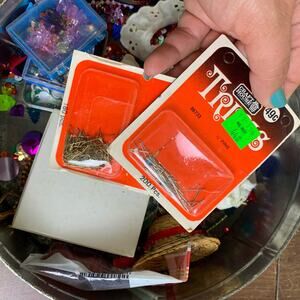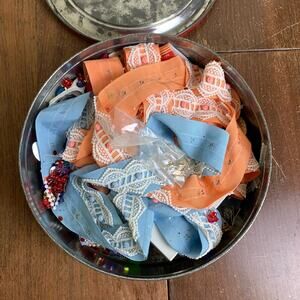 Vintage grandmacore craft Christmas storage tin junk drawer sequin glitter beads