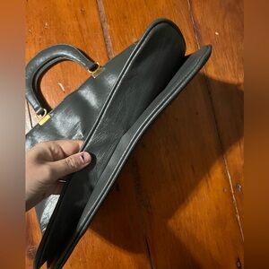 Vintage gray women’s briefcase 2 compartments gold zipper hardware short handle