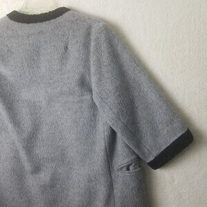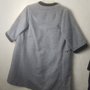 Vintage gray wool blend midlength women's overcoat 3/4 sleeve black trim handmad