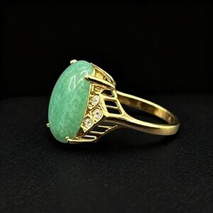 Vintage green aventurine and Swarovski crystal ring 18k GE designer signed