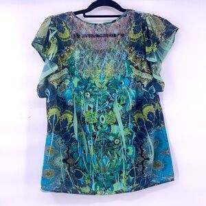 Vintage green blue boho baby doll top size medium Bella swan twilight