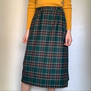 Vintage green plaid wool skirt