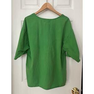Vintage green short-sleeved eyelet shirt top 100% cotton made in Pakistan Medium