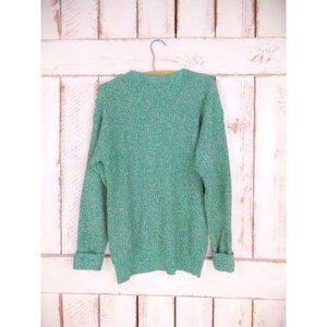 Vintage green white crew neck slouchy pullover sweater green woven knit sweater Abercrombie and Fitch medium