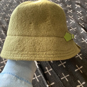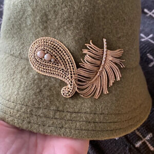 Vintage green wool hat with gold brooches