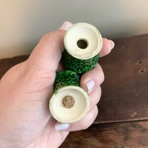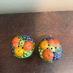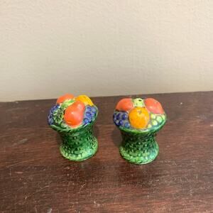 Vintage green woven basket with fruit ceramic salt & pepper shaker set