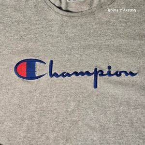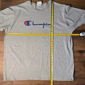 Add a touch of vintage flair to your wardrobe with this classic grey Champion t-shirt! This tee features a timeless design and comfortable fit, perfect for everyday wear. Whether you're hitting the gym, running errands, or just lounging around, this shirt is a versatile and stylish choice.