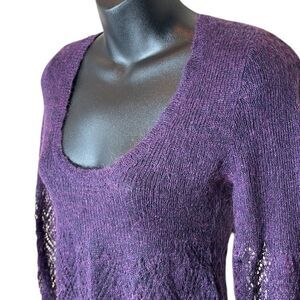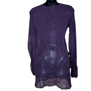 Vintage guess babydoll y2k long tunic top mohair wool eyelet purple small