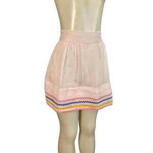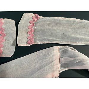 Made in pink sheer fabric, it is decorated with zig-zag trim ribbon in pink, blue, and orange.