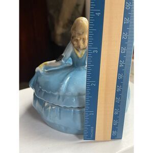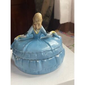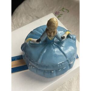 Vintage half doll porcelain trinket box powder box dresser jar.