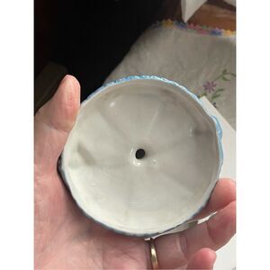 Vintage half doll porcelain trinket box powder box dresser jar. Featuring an elegant early 20th century typically made in Germany or Japan. Hand painted. There are some areas that aren’t painted. On bottom and edges of both pieces.