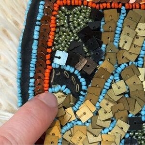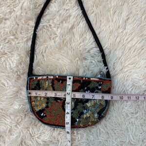 Vintage half moon shoulder bag Cristal embellished fabric with zip black gold