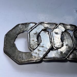 Vintage hammered silver interlocking hexagon circle belt buckle