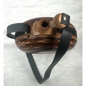 Vintage hand made folk carved wood brandy flask Canteen With Leather Strap