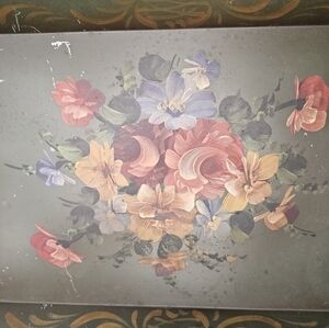 this listing is for this vintage handpainted metal tray. very nicely painted with flowers