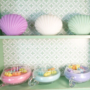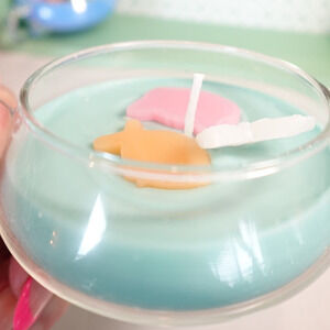 Vintage handblown glass teacup fishbowl candle with cat butterfly fish melts!