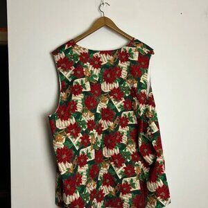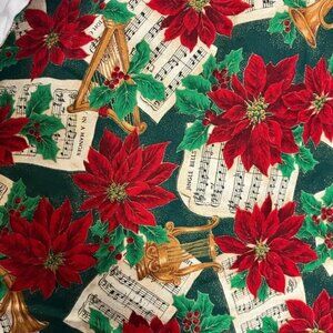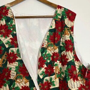 Vintage handmade Holiday Music Poinsettia Open Vest Ugly Christmas Sweater - 80s and 90s style, retro. No tags, homemade. Fits any size. Tags: Christmas, Holiday, Festive Family Jammies, Family Pajamas, Christmas Morning, Matching Pajamas, Ugly Christmas Sweater Party. Has sheet music and poinsettia print all over.