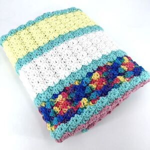 Vintage handmade afghan sofa couch throw blanket lapghan lap blanket baby rainbow