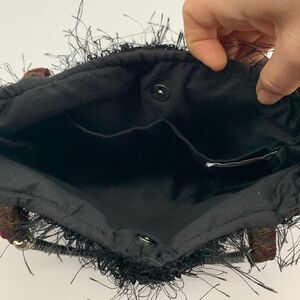 Unique, well-constructed handmade purse/bag with top handles. Cloth tag stitched to interior says “An original by Norma Haas.” Bottom is faux suede in a caramel/camel color. Rest is a paisley print in burgundy, charcoal gray and light brown. Top has a feathery, wispy fringe. Plastic/resin handles. Interior slip pockets. Excellent used condition - no flaws detected.