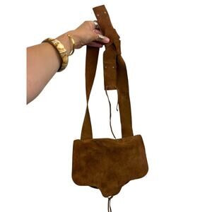 Vintage handmade brown suede small bag. Genuine suede leather. 9” x 8”. Excellent condition.