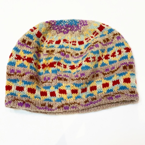 Vintage handmade colorful wool knit beanie hat