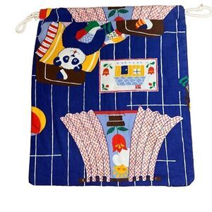Vintage handmade drawstring bag for gym, laundry, purse, tote 70’s fabric panda