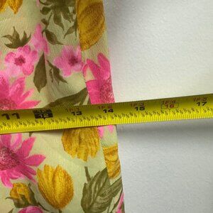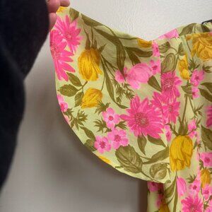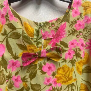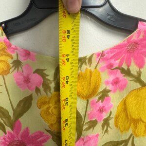 Discover a unique piece of fashion history with this vintage handmade dress, featuring a sturdy metal zipper for a touch of classic elegance. The dress boasts a stunning floral pattern with vibrant pink, yellow, and green hues, making it perfect for those who love to stand out. Crafted from a soft and breathable fabric, it promises both comfort and style. Although there is no label or size, it's a versatile addition to any wardrobe and can be great for various occasions. Ideal for vintage enthusiasts and those seeking a unique, handmade garment that speaks to a bygone era.