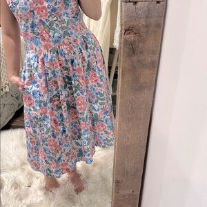 Vintage handmade dropped waist pink Floral Sleeveless jumper Dress with Pockets size large
