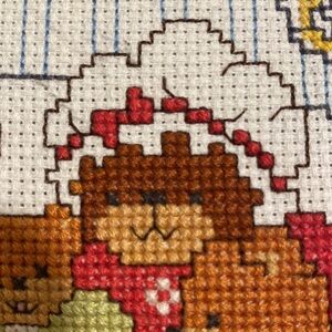Sweet piece of vintage handmade embroidery. Writing reads “lessons of love begin in the home”. Framed and ready to hang. Measures 10x8.5. Mama and papa bear with 2 baby bears. Perfect addition to a vintage style nursery