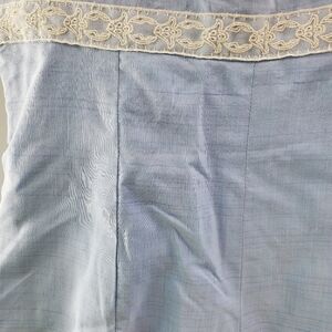 A true vintage treasure!! one of a kind vintage boy leg onesie, zip up back, sleeveless, light blue with white lace trim, elastic hem on legs. hand made so no size or material tag, feels like cotton. measurements are 17" across the bust, 13" across the waist, 20" across the hops, 11.5" across each leg (thighs) and 26" long. Costume, vintage lovers, cosplay and pinup.