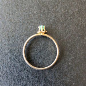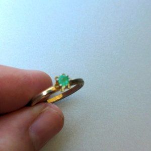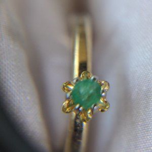 Vintage ring with one round emerald stone that looks like Colombian emerald. Size 6. Handmade. Gold plated. The stone is semi-transparent with some inclusions and is in excellent condition. The gold plating is worn on the back and intact on the front, as pictured.