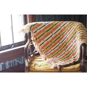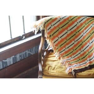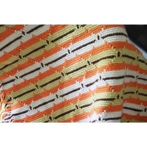 Gorgeous orange and yellow handmade blanket in unique beautiful pattern. This throw is in exceptional condition. It would look gorgeous on your couch.