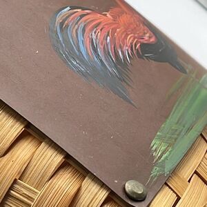 Vintage hand painted rooster basket wall pocket basket. Pop on top. Metal piece with hand painted rooster. Minimal wear.