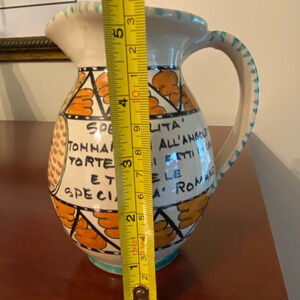 Vintage Hand painted Italian pitcher with Pizza House information from Rime. Excellent condition