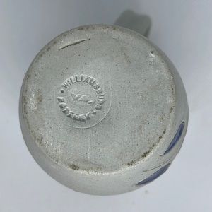 Vintage hand-thrown and hand-decorated salt-glazed blue and white cream jug or syrup pitcher from Williamsburg Pottery
