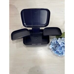 Vintage hard Case Cosmetic Makeup Organizer Box Navy Blue
