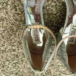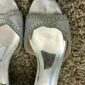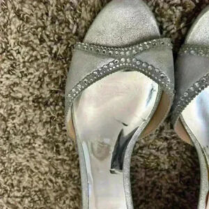 Fair used condition. Some bling is missing but nothing noticeable when wearing. Has ankle straps. One ankle strap has wear as shown but can be hidden in shoe heel slot.