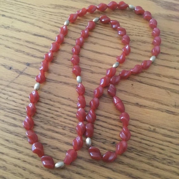 Kinda a cross between burnt orangey and burgundy? Gold accent beads.