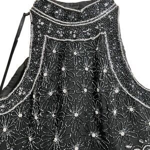 Vintage high neck silk beaded formal glamorous top, sz petite Large