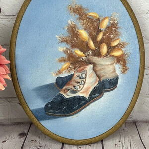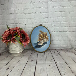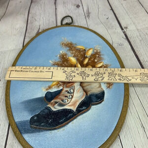 Vintage hobbyist canvas painting in oval hoop Frame