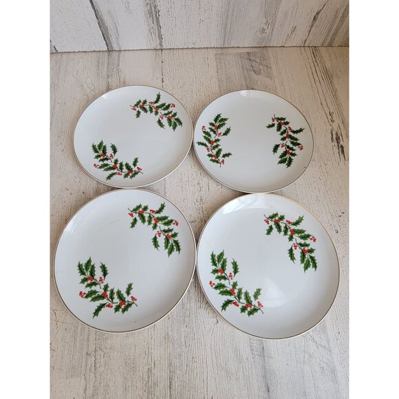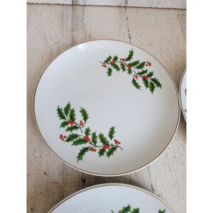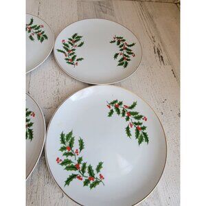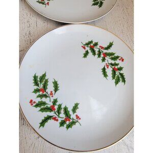 Vintage holiday leaf mistletoe white Japan plate set xmas