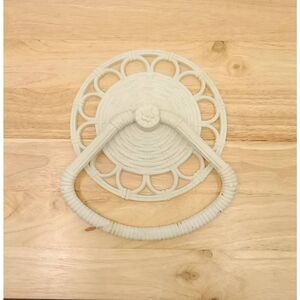 Pre-owned plastic, faux wicker towel rack, ring by Homco interiors. Wall hanger on back. Needs cleaning