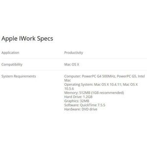 Features - See last image for more specs. DVD drive required for installation. Version 9.0.3. Has Pages, Keynote & Numbers on disc. Not compatible with Catalina. Be aware, Macs are not backwards compatible. Recommend to research online, before purchasing product.