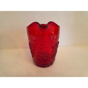 Vintage imperial Red Glass Pitcher With Embossed Grape & Leaf Pattern