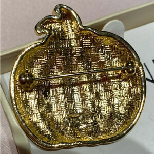 *Vintage in Box* Monet Stamped Enamel Pumpkin Brooch- Gold Tone