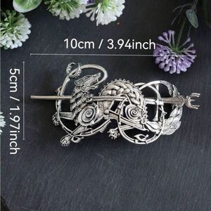 Gorgeous Vintage Inspired Viking Hair Accessory with Silver Tone and beautiful unique design. Amazing engraved detailing on Wolf and includes matching hair pin to hold it in place. A great statement piece. 🖤