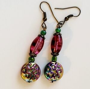 I love how these turned out! These earrings feature vintage pale purple lampwork beads as well as new irredescent glass coins. These are handmade and one of a kind. I am struggling with photography and am completely honest when I say the photos do not do this pair of earrings justice! All earrings come with stoppers and are carded and ready for gift giving.