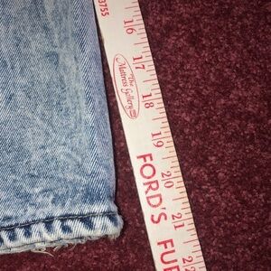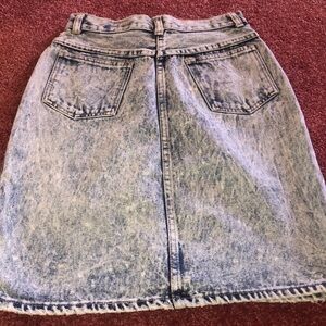 Vintage blue Jean skirt measurements are in the pictures it has pockets in the back and in the front it buttons at the waist and zips